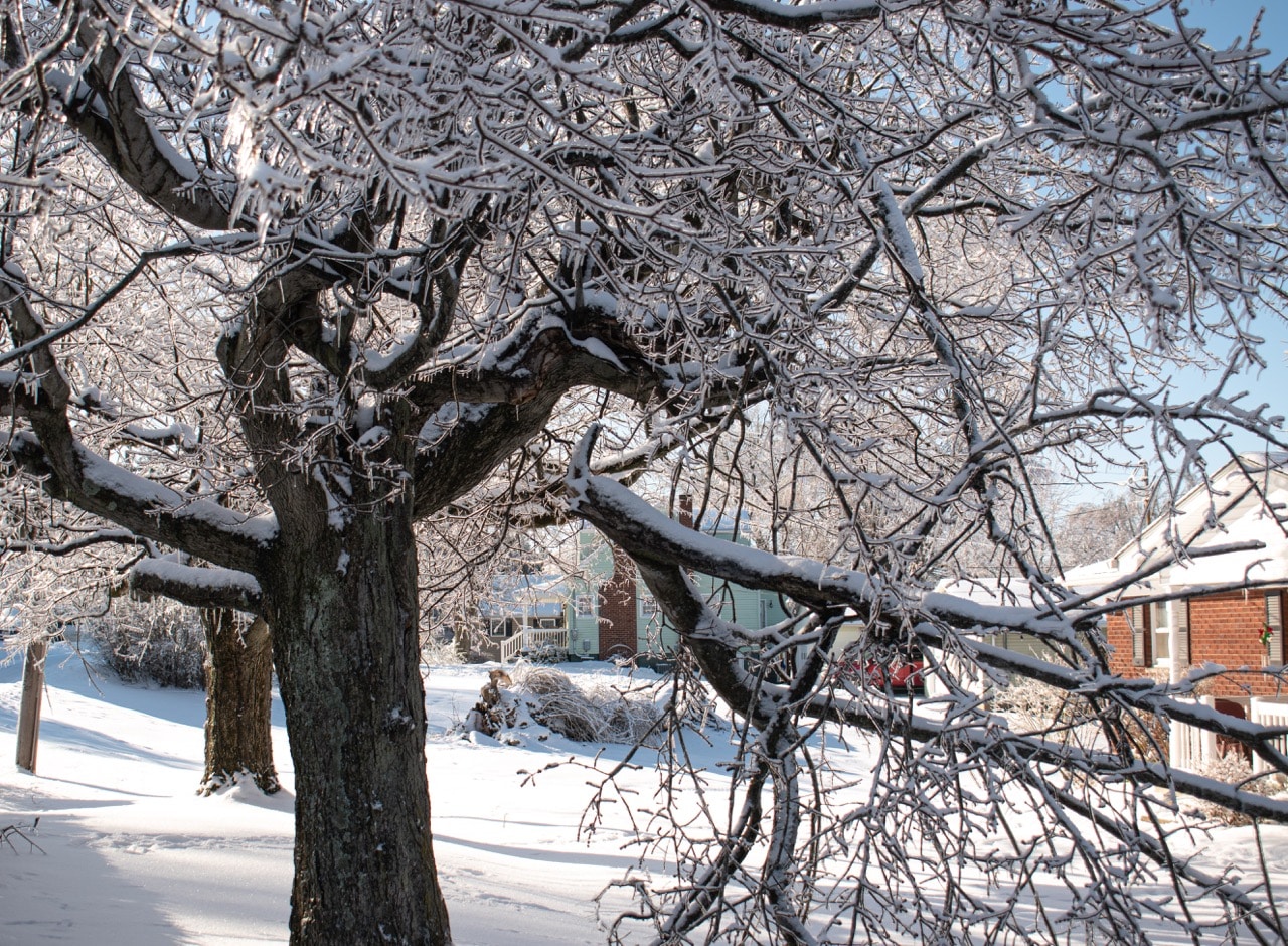 Every job begins with a detailed evaluation of the tree. Winter improves visibility because the canopy is bare. Our team checks for cracks, deadwood, sagging limbs, and branches affected by snow load. This helps determine which limbs pose the greatest risk.