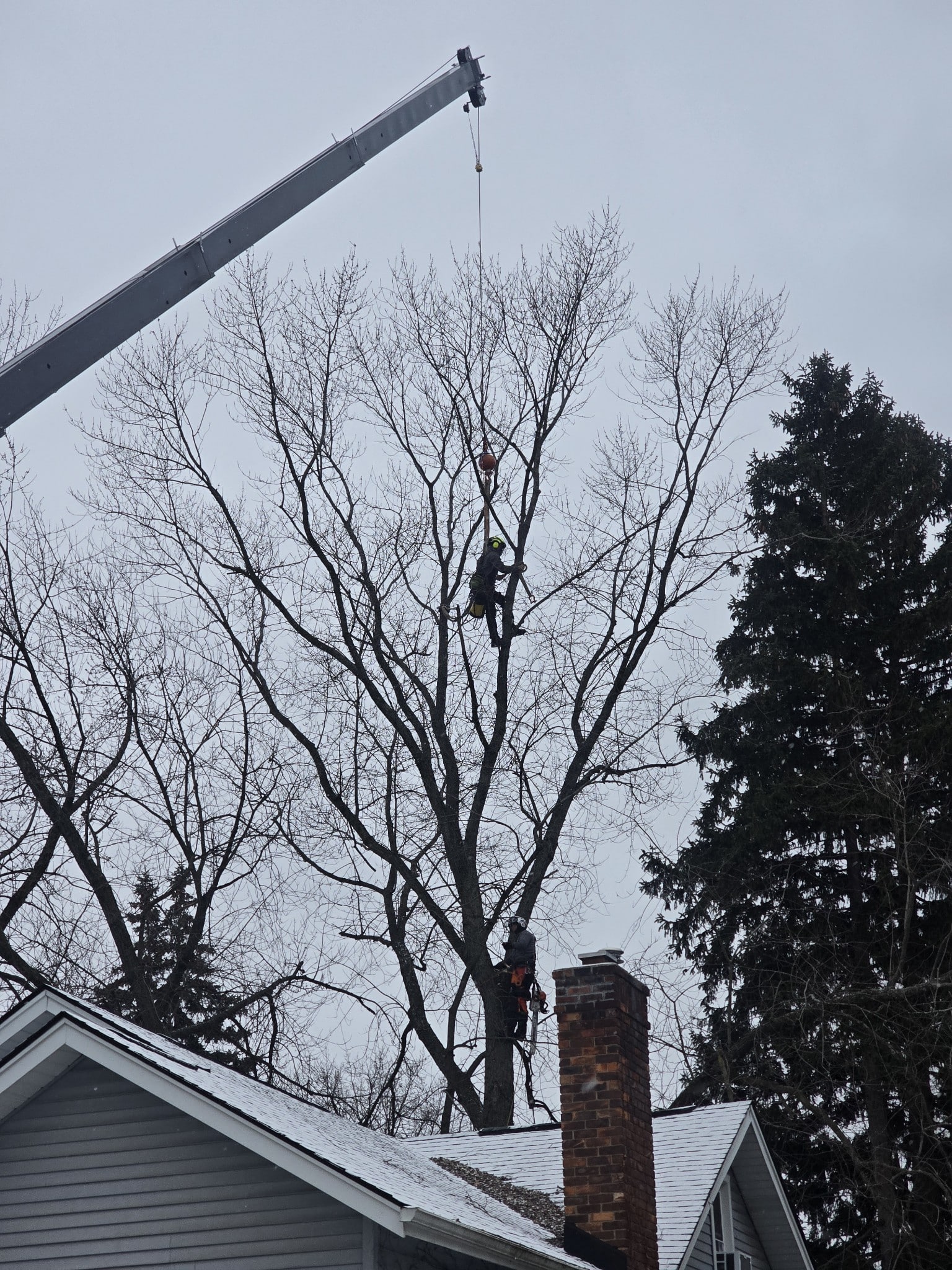 Our process includes a structural evaluation, weight reduction pruning where appropriate, and removal of trees that present an immediate threat. Winter makes these tasks more efficient, with improved visibility and reduced landscape impact.